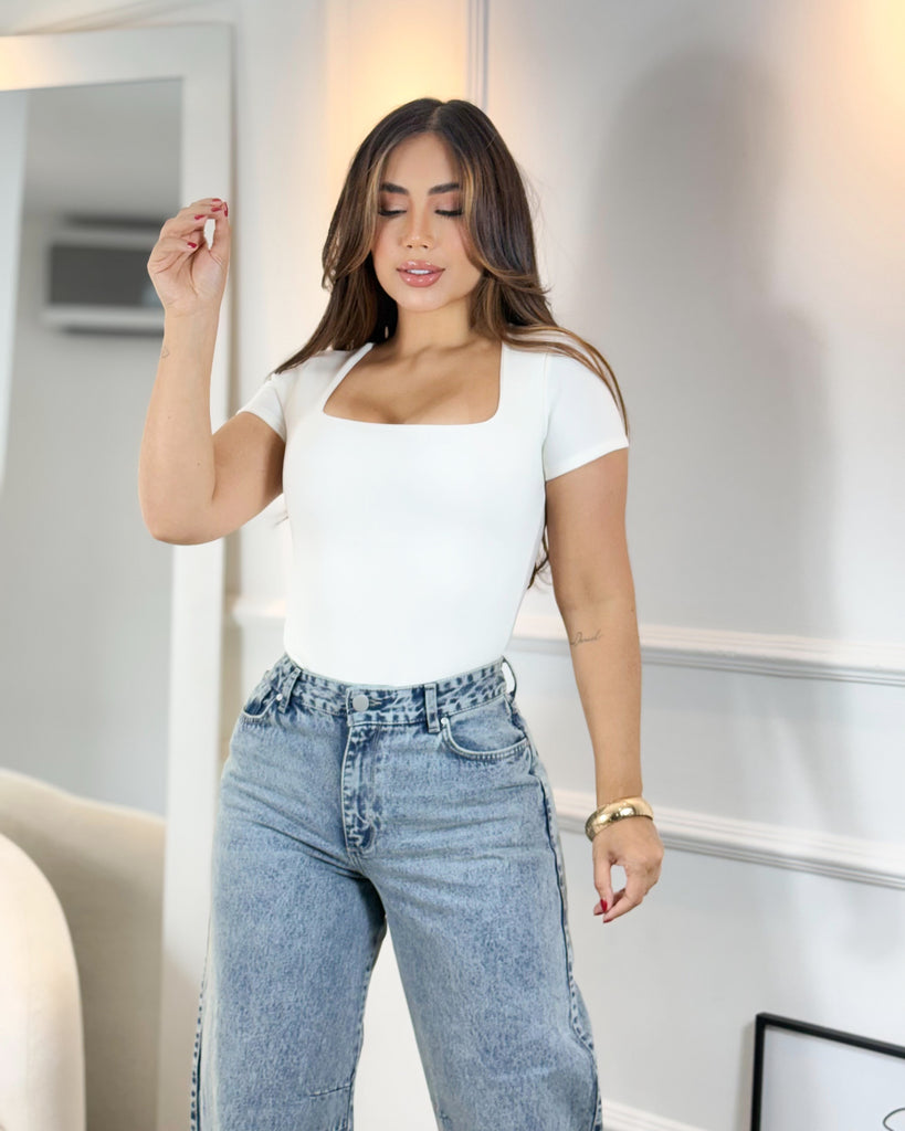 Body básico con diseño cuello cuadrado, confeccionado en tela lycra de alta elasticidad y ajuste perfecto que realza la figura con total comodidad.