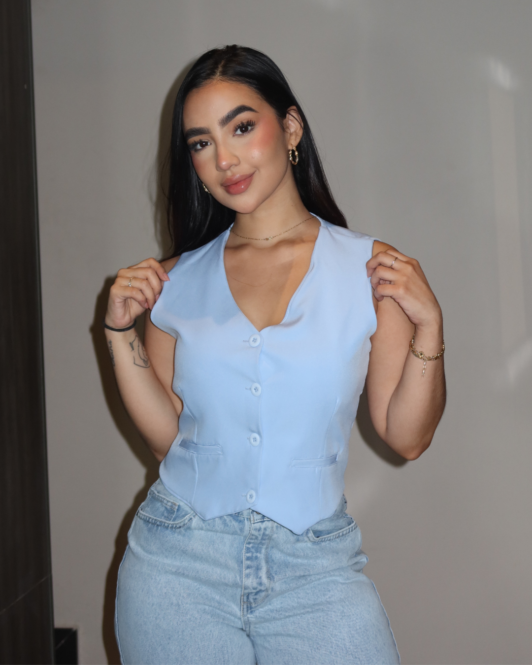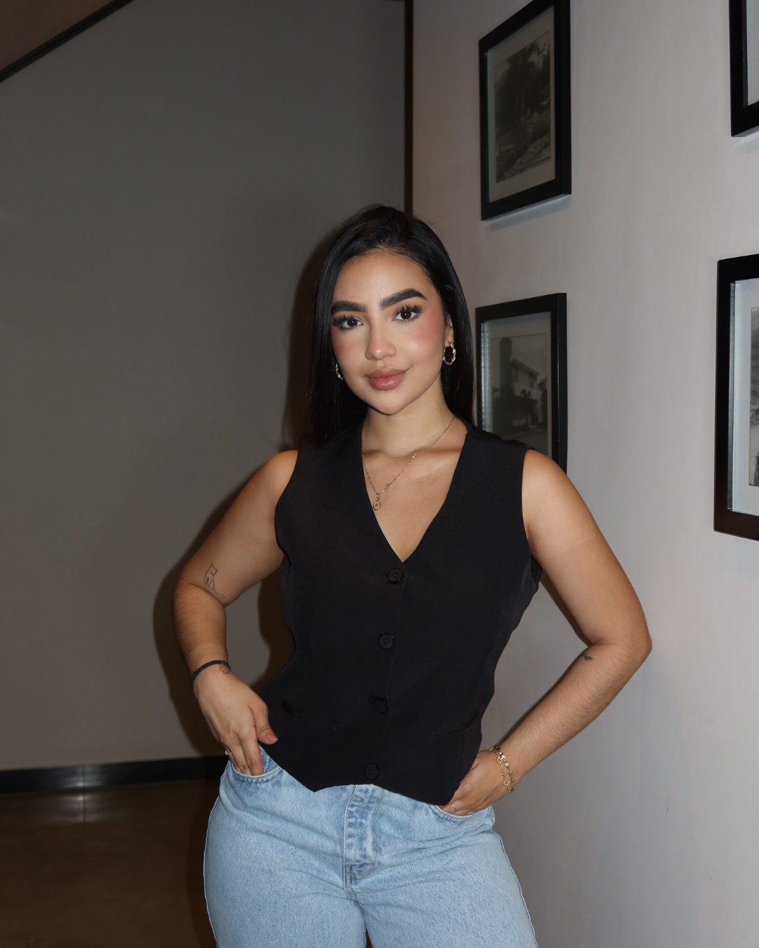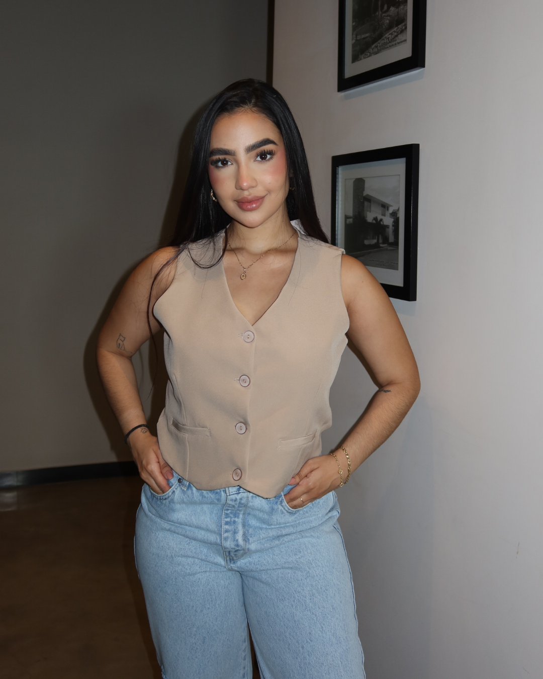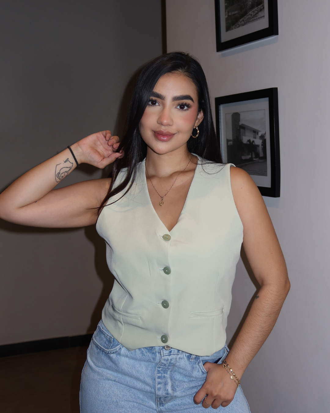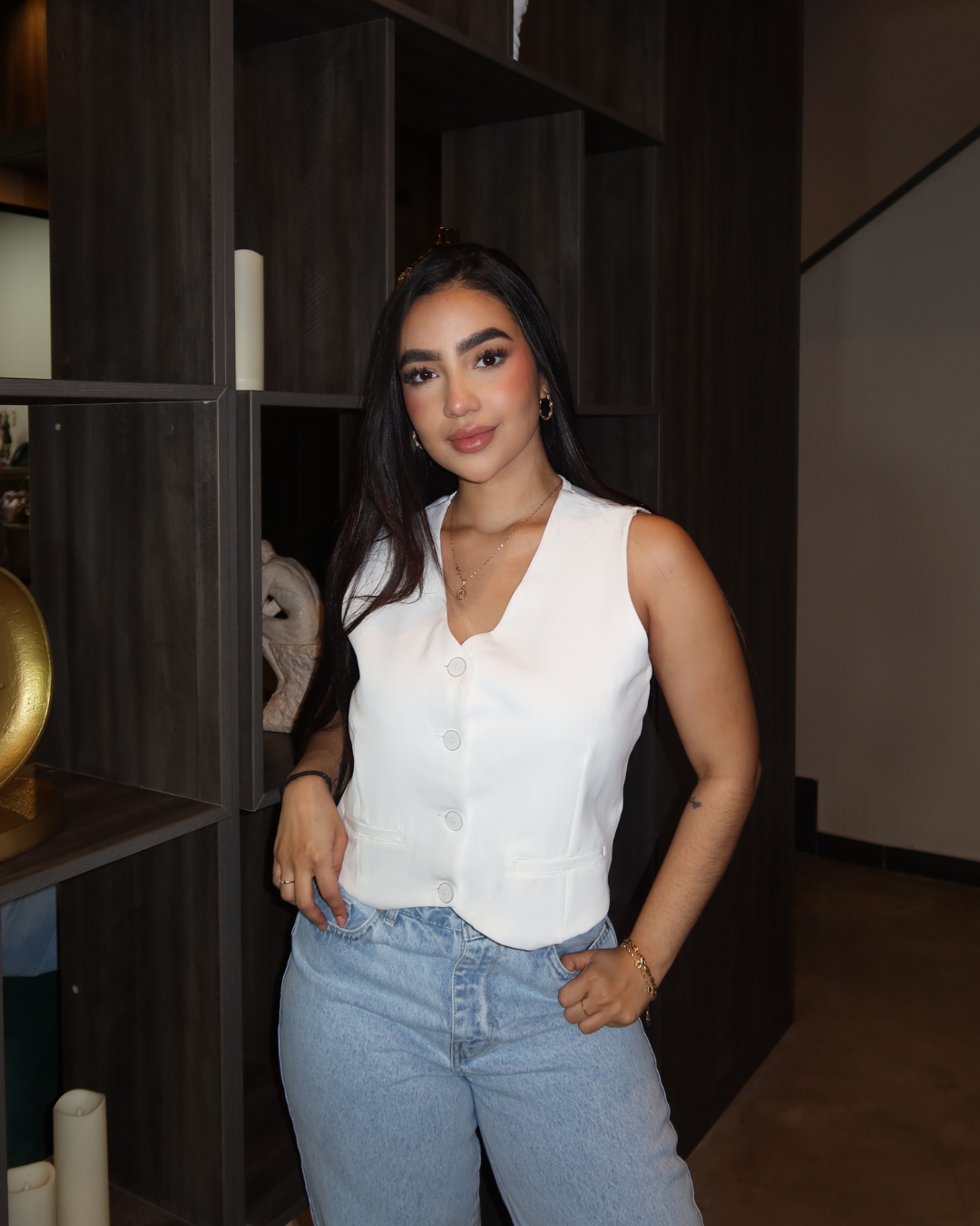 Este chaleco es una prenda esencial que aporta un toque elegante y moderno a cualquier outfit. Su diseño versátil permite usarlo en diferentes ocasiones, desde looks casuales hasta combinaciones más formales, adaptándose fácilmente a tu estilo.