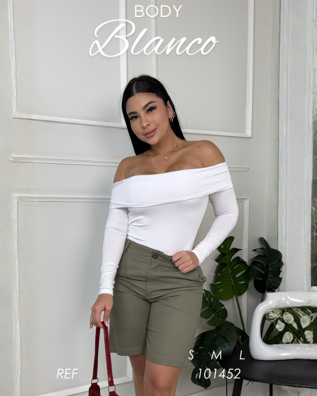 Body de cuello bandeja en color rojo, una prenda elegante y femenina que resalta los hombros y estiliza la parte superior del cuerpo. Su diseño ajustado se adapta perfectamente a la silueta, brindando comodidad y un acabado sofisticado.